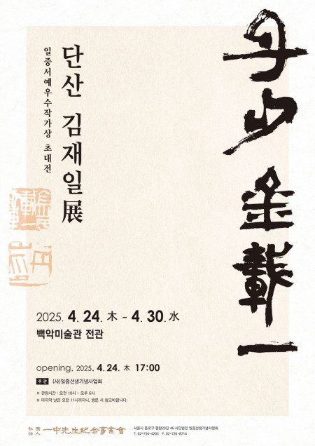 단산 김재일展 / 일중서예우수작가상 초대전✅ 전시기간: 2025.04.24(목) ~ 04.30(수)✅ 전시장소: 백악미술관 전관(서울 종로구 인사동9길 16)✅ …