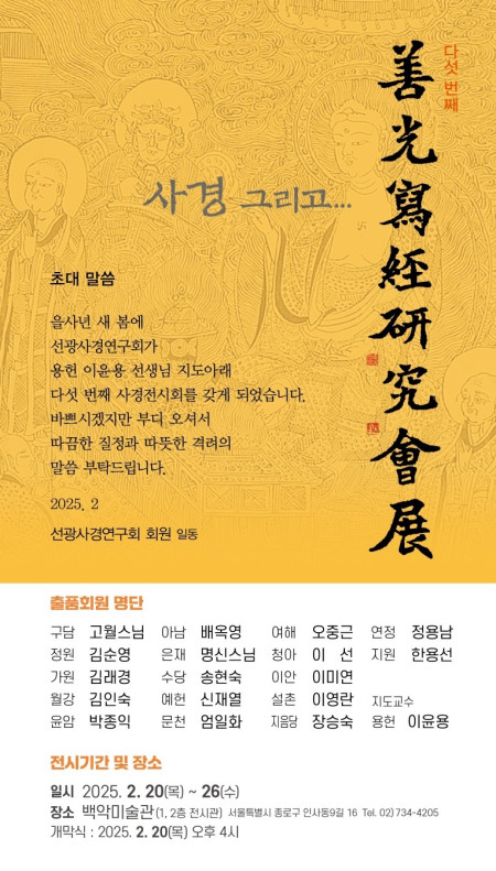 선광사경연구회전-✅ 전시기간 : 2025. 2. 20(목) ~ 2. 26(수)✅ 전시장소 : 백악미술관 1, 2층 전관 (서울시 종로구 인사동9길 16)✅ 문의 …