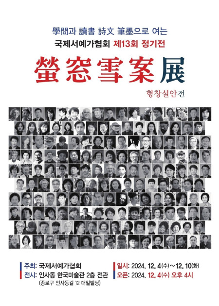 學問과 讀書 時文 筆墨으로 여는 국제서예가협회 제13회 정기전-전시일시: 2024. 12. 4(수) ~ 12. 10(화)전시오픈: 2024. 12. 4(수) 오후…