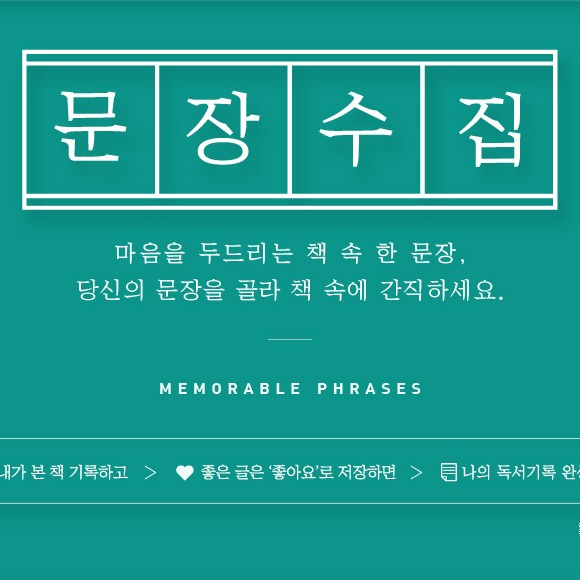 책을 읽다보면 밑줄을 긋거나 메모해 두는 문장들이 있습니다. 그런 문장들을 공유하는 곳입니다.