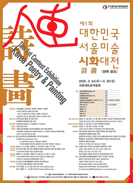 제1회 대한민국서울미술시화대전-2020. 3. 24.(화) ~ 30(월)서울메트로미술관-자세한 내용은 링크를 참고해 주세요.
