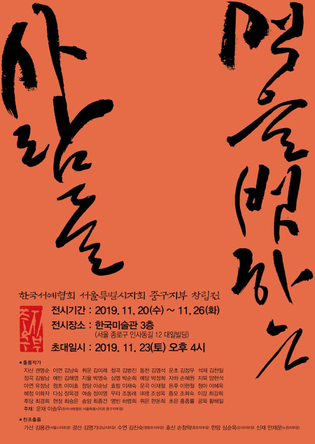 먹을 벗하는 사람들한국서예협회서울특빌시지회 중구지부 창립전기간 : 2019. 11.20~11.26장소 : 한국미술관 3층