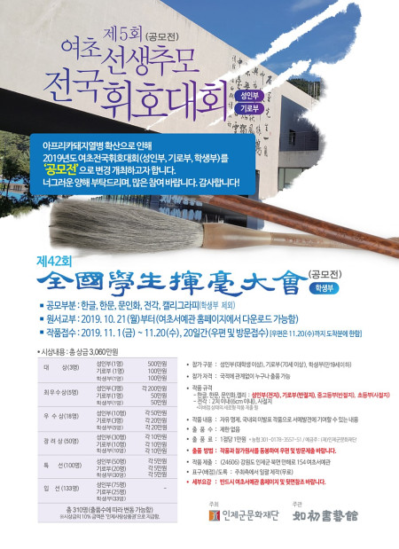(공모전) 제5회 여초선생추모전국휘호대회제42회 전국학생 휘호대회<아프리카 돼지열병 확산으로 인해 2019년도 여초전국휘호대회(성인부, 기로부, 학생부)를…