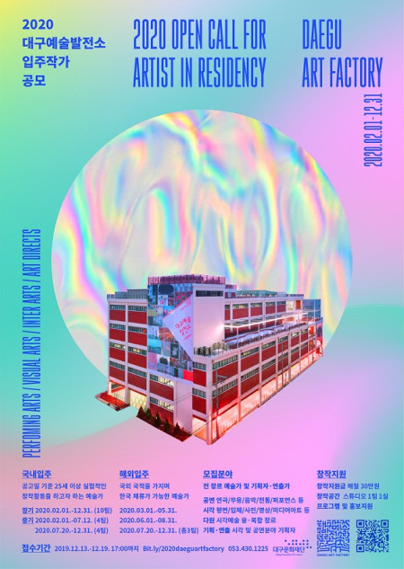 2020 대구예술발전소 입주작가 공모(재)대구문화재단 대구예술발전소에서 예술가의 창작활동 지원을 위한 2020년도 대구예술발전소 10기 입주작가를 모집합니다.대…