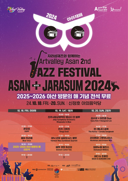 아산 제2회 재즈페스티벌 with 자라섬-일시 : 2024-10-18 ~ 2024-10-20장소 : 신정호 야외음악당-#신정호 #재즈페스티벌 #공연 #콘서트…