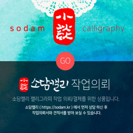 소담캘리 작업의뢰 안내 / 소담캘리 캘리그라피 작업 의뢰/상담/결제를 위한 소담스토어 상품입니다.소담캘리 홈페이지( https://sodam.kr )에서 먼…