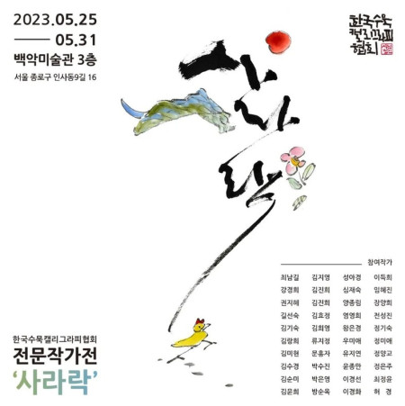한국수묵캘리그라피협회 전문작가전-한국수묵캘리그라피협회 전문작가전 "사라락"백악미술관3층 / 5월25일~5월31일인사동9길16-#소담글씨 #소담캘리 #소…