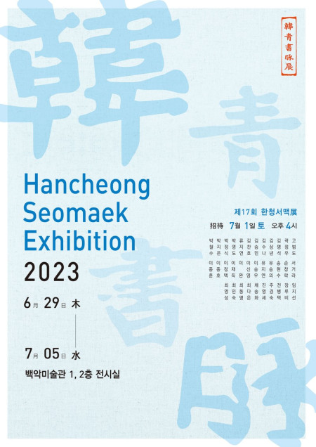 제17회 한청서맥展-전시 장소 :백악미술관 1,2층 전시실 (서울 종로구 인사동9길 16)전시 날짜 :2023. 6월 29일 (목) ~ 7월 05일 (수)…