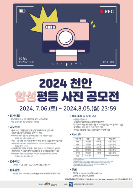 2024 천안 양성평등 사진공모전-접수기간 : 2024.07.06 ~ 08.05접수방법 : 이메일 (1인/팀 : 3점 이내)-#소담글씨 #소담캘리 #소…