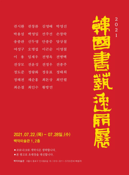 2021 한국서예일품전-기간 : 2021. 7. 22(목) ~ 7. 28(수)장소 : 백악미술관 1, 2층 (서울시 종로구 인사동9길 16)