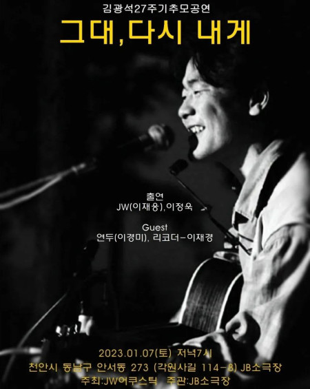 김광석 27주기 추모공연 / 그대, 다시 내게-2023년 01월 07일 (토) 저녁7시천안시 동남구 안서동 273(각원사길114-8) ,JB소극장※무료공연(…